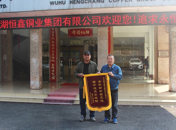 10 月26日上午,蕪湖恒鑫銅業集團有限公司職工邵勇捧著一面寫有“金秋助學愛無疆、雪中送炭冬暖陽”的錦旗,送到公司工會主席汪自平手里。邵勇感激地說:“感謝工會,在我家庭最困難的時候,伸出了援助之手,我真誠地感謝你們!”